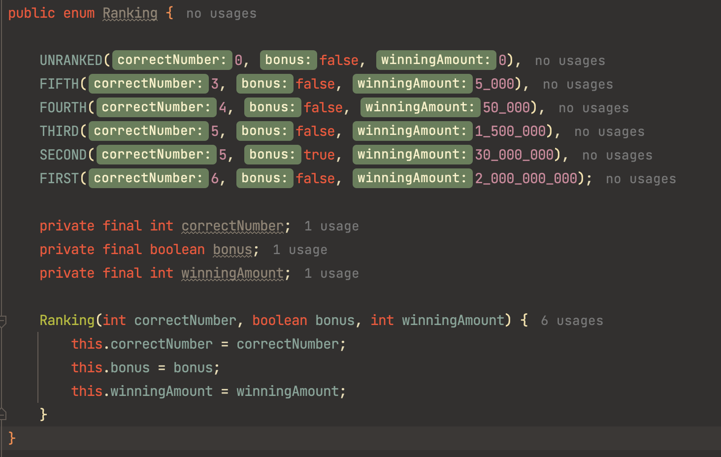 Ranking이라는 enum 클래스로 테스트를 진행해보겠습니다.