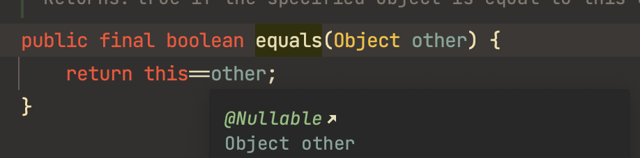 내부적으로는 equals가 == 를 사용하는 것을 알 수 있습니다.
