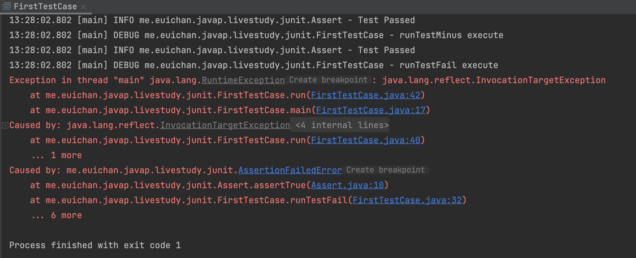 new FirstTestCase("runTestFail").run();